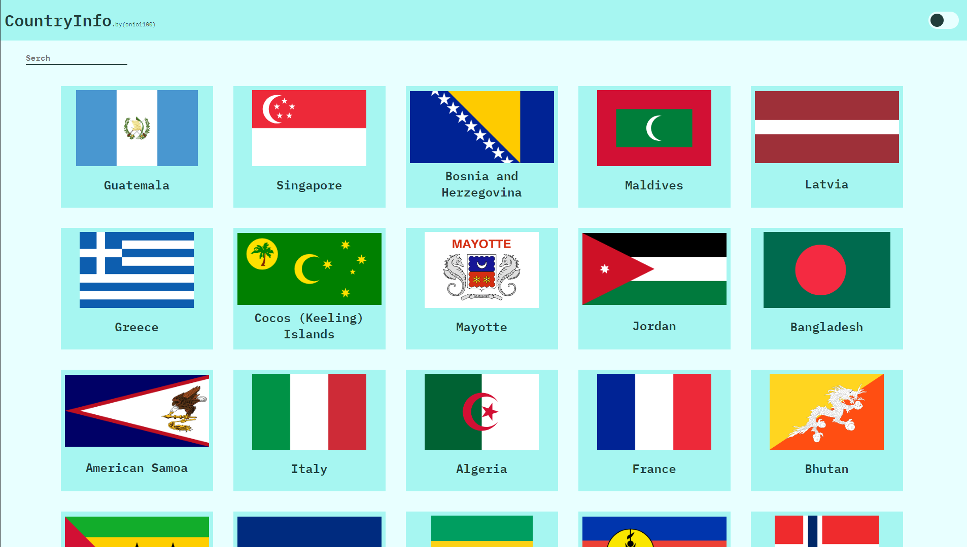 Built in React, the project uses data taken from the REST Countries API to display a list of countries where you can check some details about them when you click on a selected country.